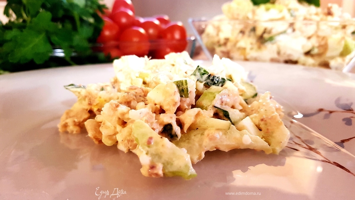 Салат рыбный с сельдереем и огурцом