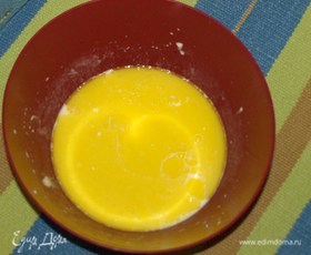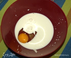 Слегка взбиваем молоко, сметану и яйцо. Молоко должно быть теплым.