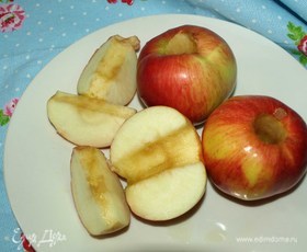 У яблок удаляем серцевину и нарезам их на крупные дольки.