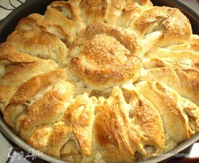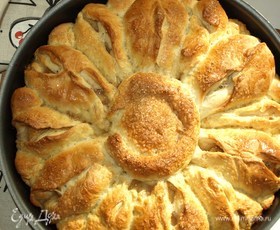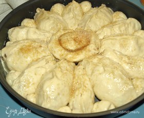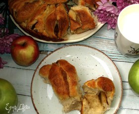 Даем пирогу постоять 15 минут. Соединить яичный желток с молоком. Смазываем пирог яично-молочной смесью. Посыпать остатками сахара и корицей.
