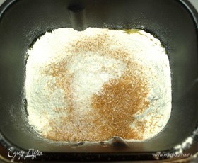 Муку просеять. Добавить соль, сахар, дрожжи. Все перемешать. Соединить две смеси и замесить тесто. За меня это сделала хлепобечка.