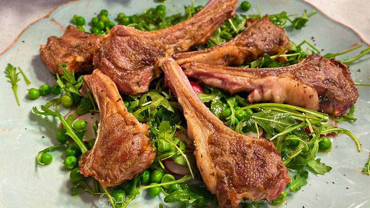 Бараньи ребрышки с руколой и редисом