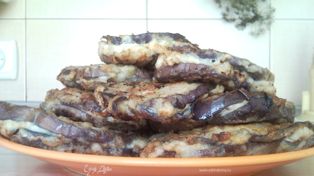- Шаг 1Режем Гелиус кружками толщиной около 0,5 см. Солим. Даём постоять 10-15 мин. Слегка обжариваем без масла (идеально – на сковородке «гриль»). Из куриного филе, сала, лука делаем фарш как на котлеты. Берём два кружка баклажана, между ними прокладываем фарш, обмакиваем получившийся биток в муку, яйцо и снова в муку. Обжариваем до готовности.