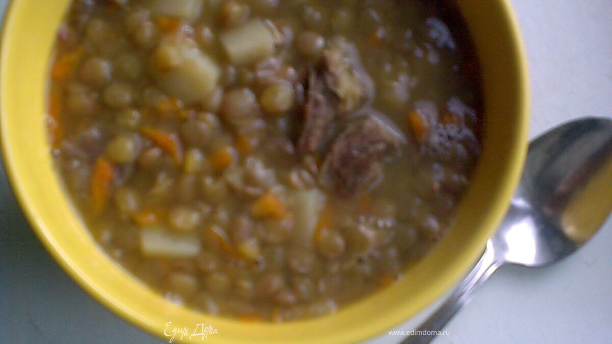- Шаг 1Порезать картофель кубиками, промыть чечевицу, отправить их в бульон.
