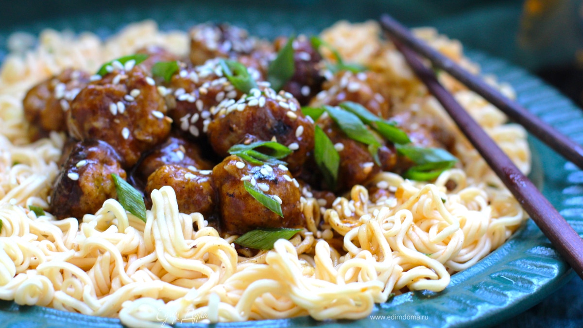 Азиатские фрикадельки в соусе с лапшой