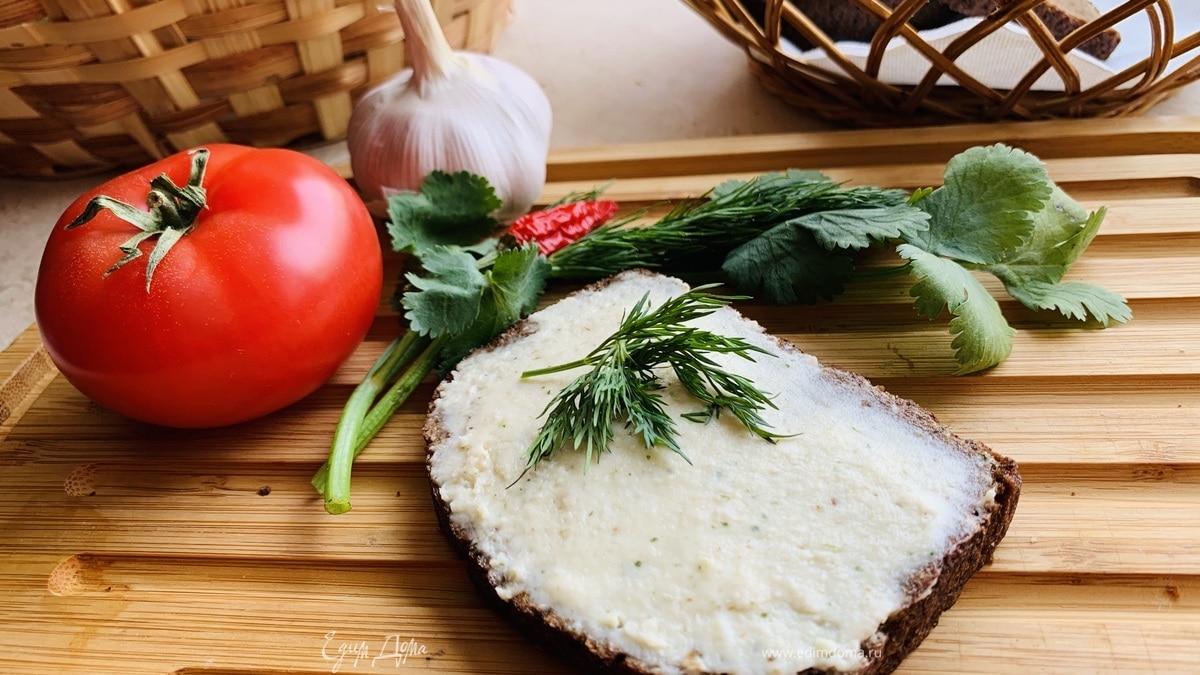 После долгого взбивания состав приобретает консистенцию абсолютно гладкого шелкового крема. На это этапе нужно попробовать, при необходимости досолить или добавить специи по вашему вкусу. Я добавила сухую петрушку и сушеный лук.