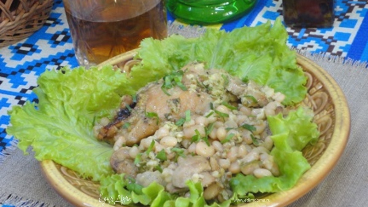 Куриные голени с фасолью и соусом песто из петрушки