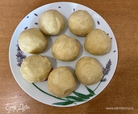 Готовое тесто разделить на 8 частей, скатать шарики и отправить в холодильник на 30 минут.