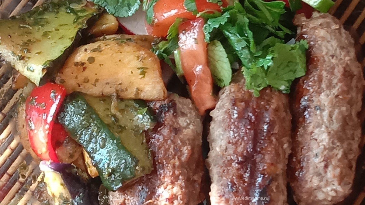 На минимальном количестве растительного масла готовим на гриле наши кебабы. Обжариваем их до румяной корочки с двух сторон и затем буквально на 7 минут закрываем крышкой при маленьком огне. Благодаря этому кебабы не будут сухими и приобретут сочный вкус. - Шаг 8
