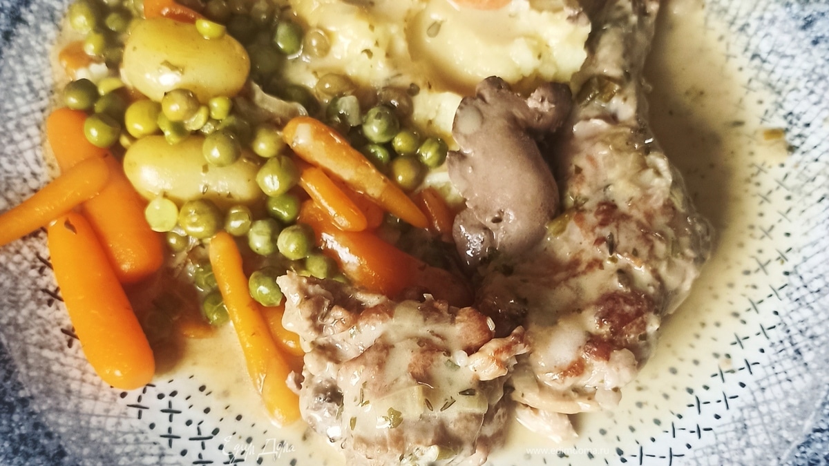 Раньше я не очень любила кролика, пока не попробовала мясо по этому рецепту. Кролик получается нежным, сочным, с соусом можно подать любой гарнир. Но, как мы знаем, кролик любит морковку — не забудьте про нее. Можно готовить на белом сухом вине, либо просто на бульоне. На ваш вкус. Кстати, по такому рецепту можно приготовить не только кролика, но и любую птицу. Очень советую!