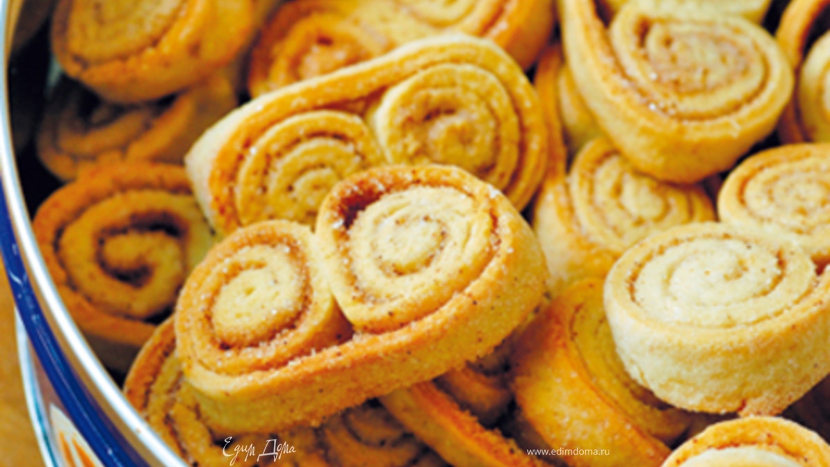 Смешиваем половину стакана сахара с корицей и посыпаем пласты. Начинаем сворачивать тесто с широкой стороны. Свернутый лист кладем в морозилку на 30 минут. - Шаг 3Когда тесто замерзнет, нарезаем печенье толщиной 1 см. Выпекаем при 200°C 17 минут, до золотистого цвета. Выкладывайте заготовки плотно, так как тесто не очень увеличивается в объеме.