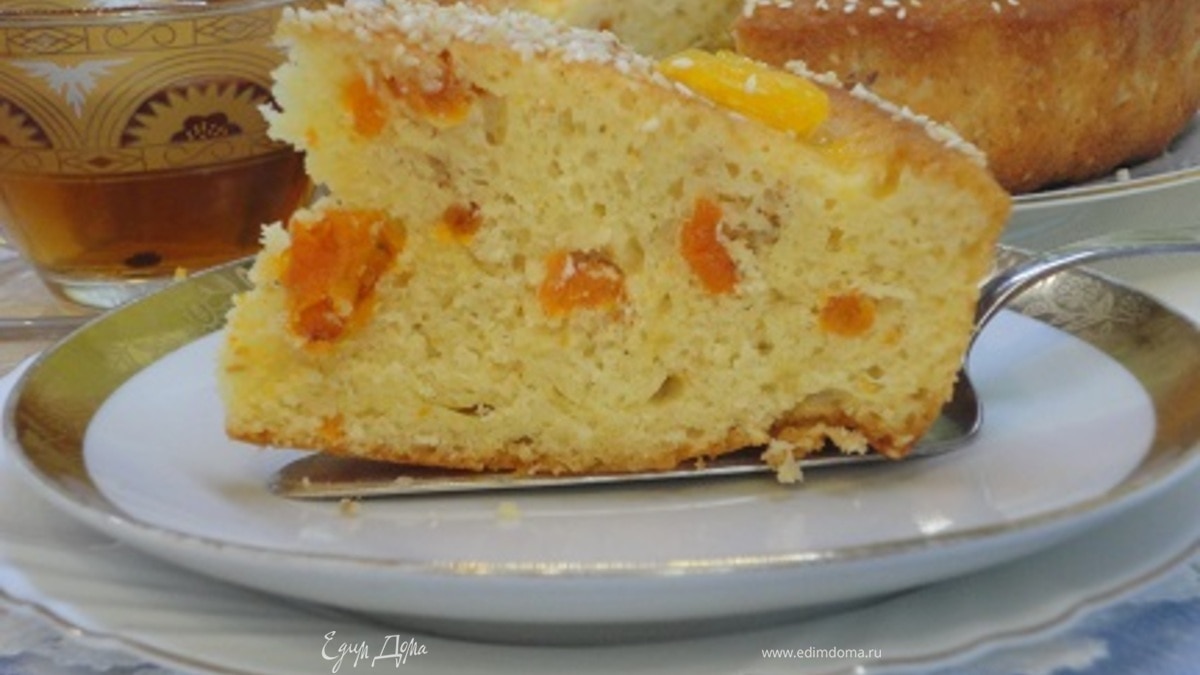 Апельсиновый кекс с курагой и кунжутом
