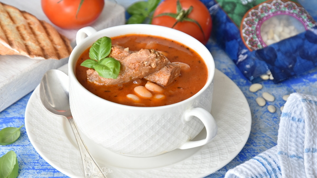Томатный суп с белой фасолью и тунцом