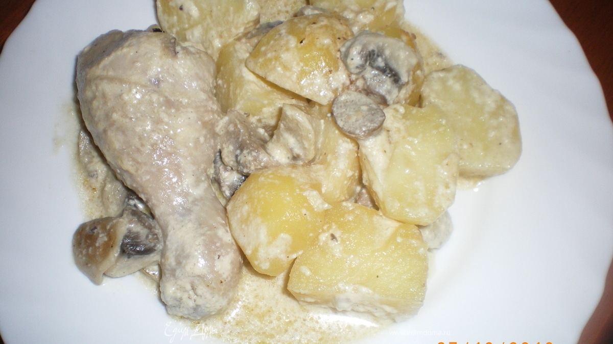 Запеченная курочка с грибами и картофелем
