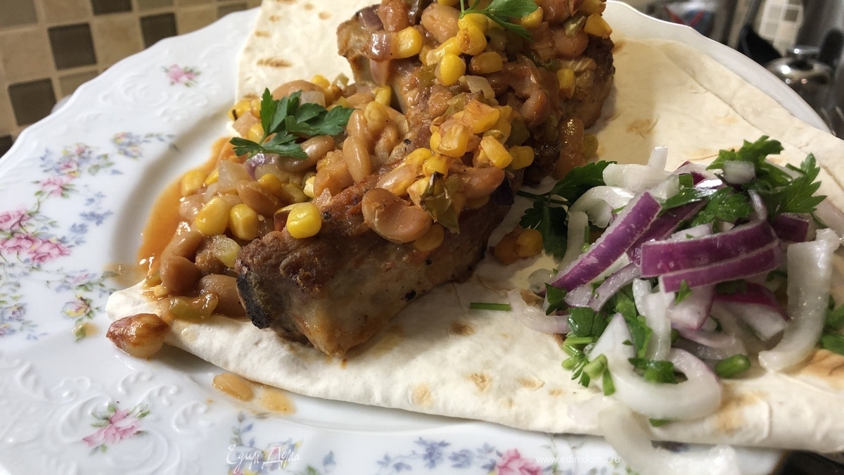В форму для запекания первым слоем укладываем фасоль с кукурузой, сверху кладем мясо. - Шаг 7