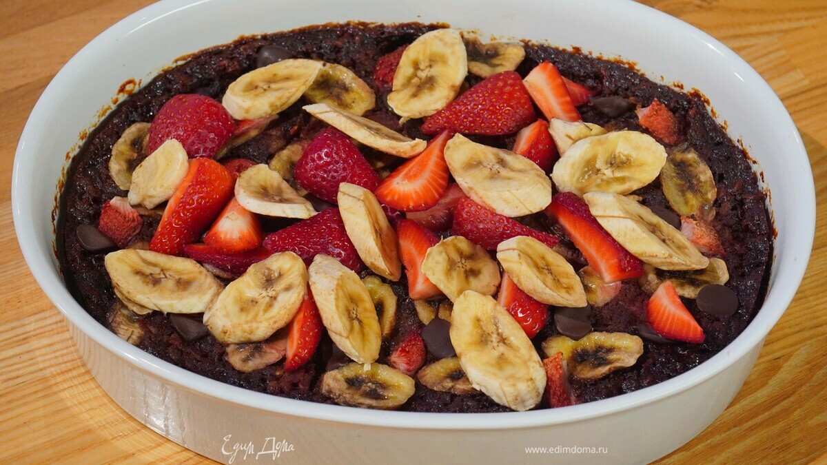 Шоколад можно взять тот, что вам нравится, а в тесто вместо клубники отлично пойдет голубика или ежевика. Подавать такой пирог хорошо с йогуртом, нежирной сметаной или творогом.