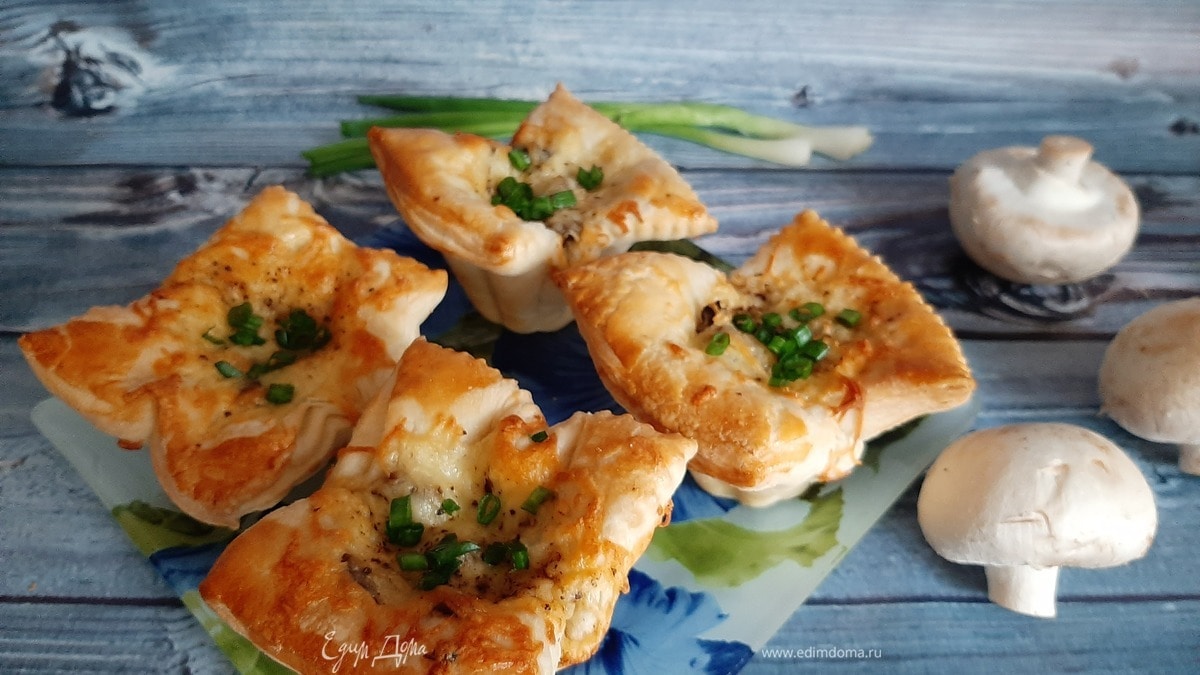 Тесто слоеное дрожжевое раскатать слегка, нарезать на 6 квадратиков. - Шаг 2