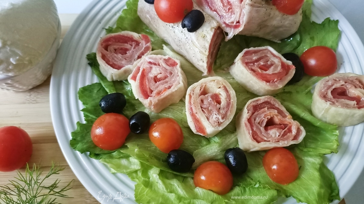 Рулет из моцареллы с прошутто и томатами