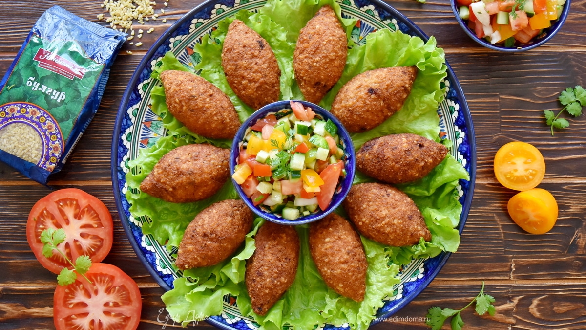 Раскалить в сотейнике растительное масло, уменьшить огонь чуть ниже среднего и обжарить куббе до золотистого цвета со всех сторон. Переложить готовые котлетки на салфетку. Подавать куббе с салатом из свежих овощей.