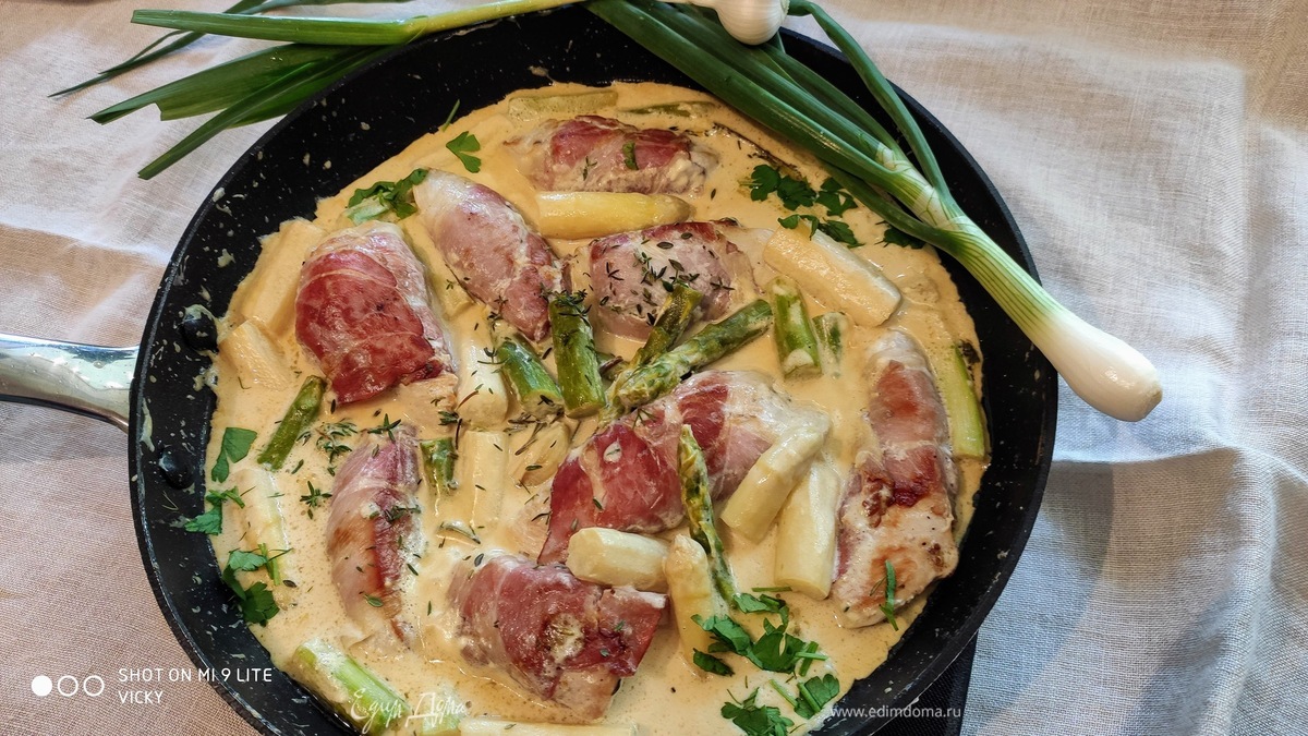 Вика, объедение😋😋😋 мои просто обожают курицу в беконе, а тут ещё и соус... и спаржа... а ароматы💗💗💗
