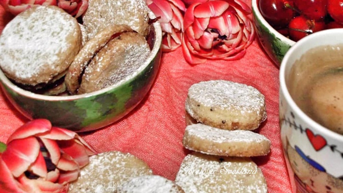 Хрустящее ореховое печенье с клюквенным джемом — это лакомство придется по вкусу многим. Клюквенный джем можно заменить шоколадным ганашем или вишневым джемом.