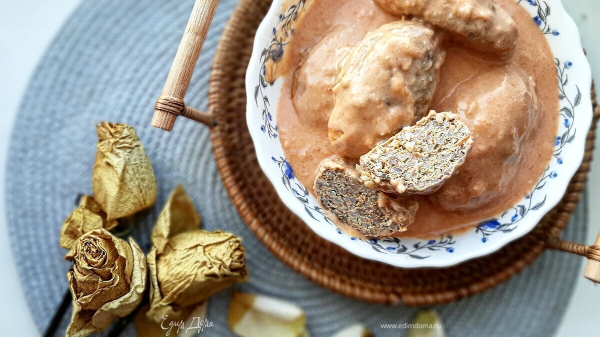 - Шаг 3Майонез, кетчуп и муку смешать, залить водой. Хорошо перемешать венчиком, чтобы не было комочков. Залить гречаники и — в духовку на 30 минут при 200°C.