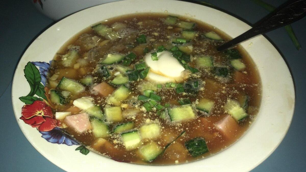 Перемешиваем. Именно в таком виде лучше всего хранить окрошку. Квас, майонез и зелень применять к уже разложенной по тарелкам заготовке. Подавать в холодном виде.