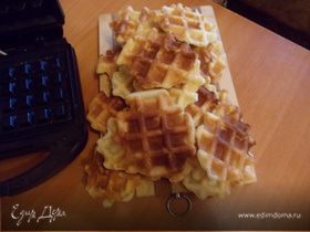 Подавать картофельные вафли можно с запеченной в томатном соусе фасолью и глазуньей. Рецепт фасоли здесь ссылка на рецепт Один час у вас уйдет на приготовление всего блюда, включая фасоль и яичницу. В то время, когда запекается фасоль, можно заниматься вафлями. - Шаг 5