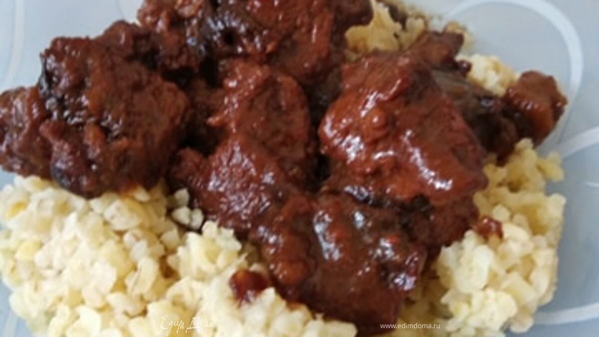 Рецептом поделилась подруга, которая живет в Израиле. Сказала, что это типичный способ приготовления говядины. Ржаной хлеб придает соусу интересный оттенок. Соус получается очень густой, обволакивающий мясо. У меня был крупный лук. Если у вас мелкий, возьмите побольше. Подавать можно с картофелем или другим гарниром. У меня был булгур. Нам понравилось.