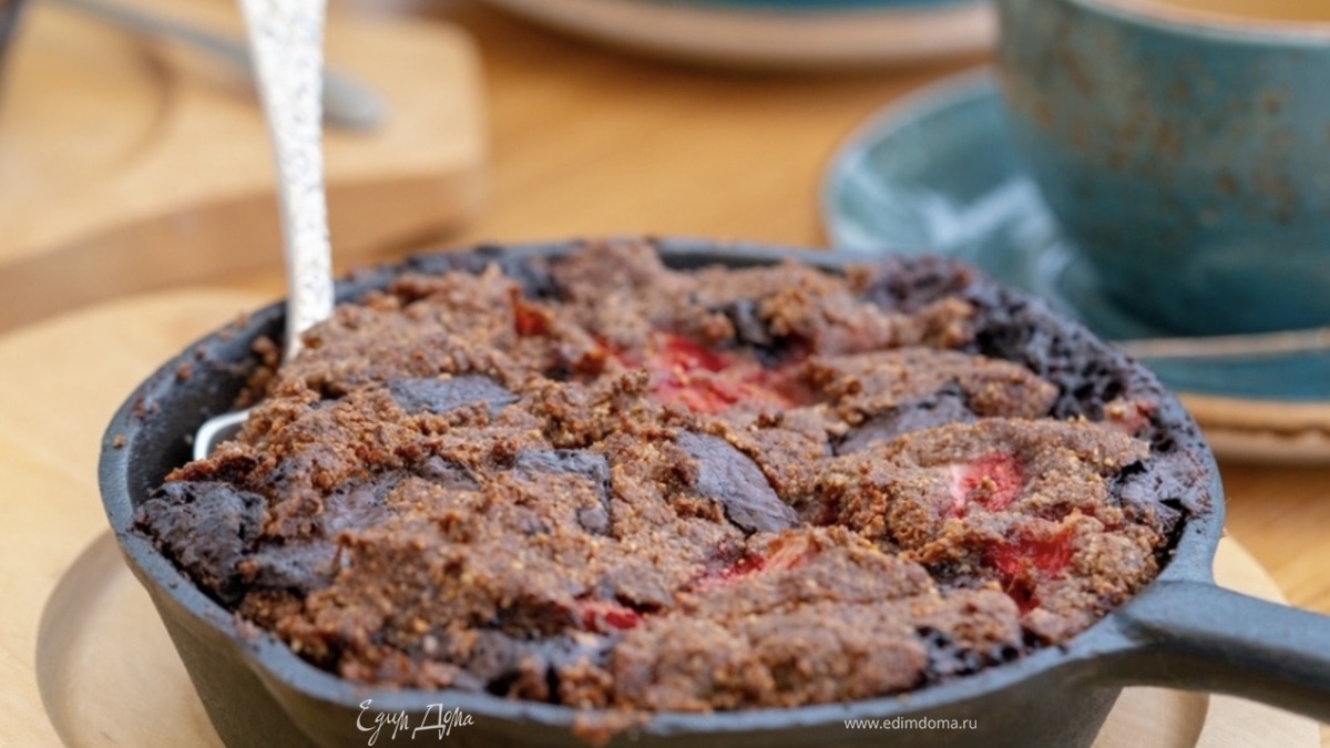 Теплое печенье в миниатюрной чугунной сковородке! С клубникой, шоколадом и шариком любимого мороженого! Восторг и феерия вкусов! Особый шарм этому десерту придает именно форма подачи —