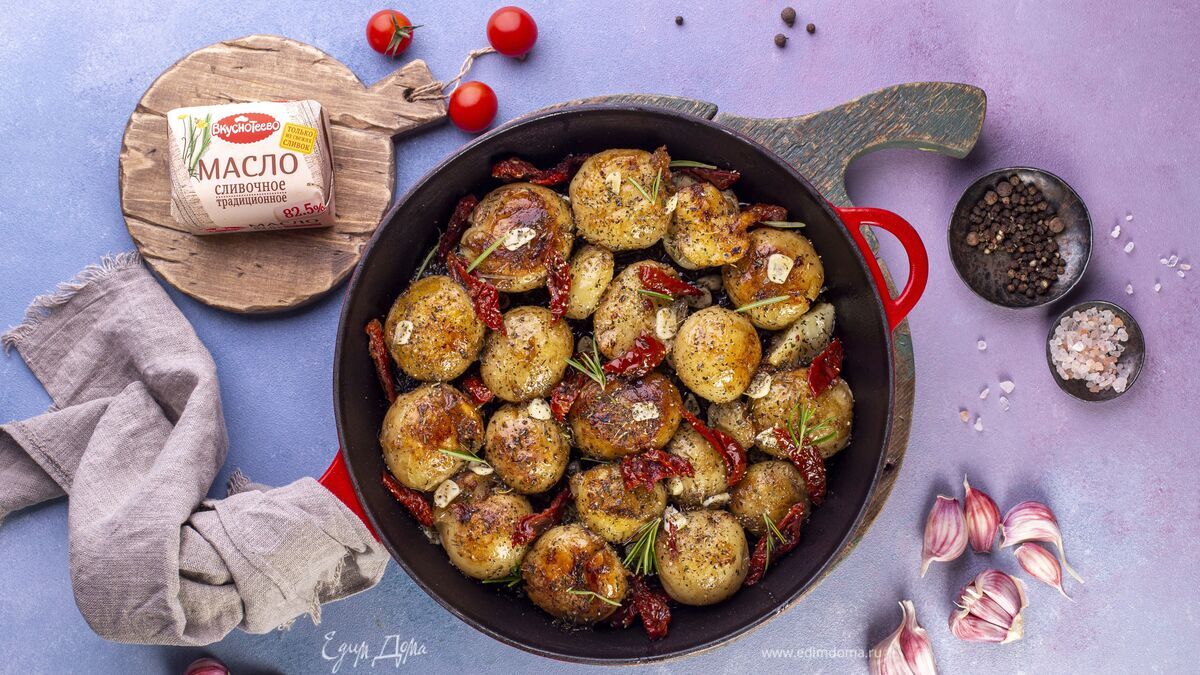 Добавьте вяленые помидоры, украсьте веточками розмарина и подавайте.