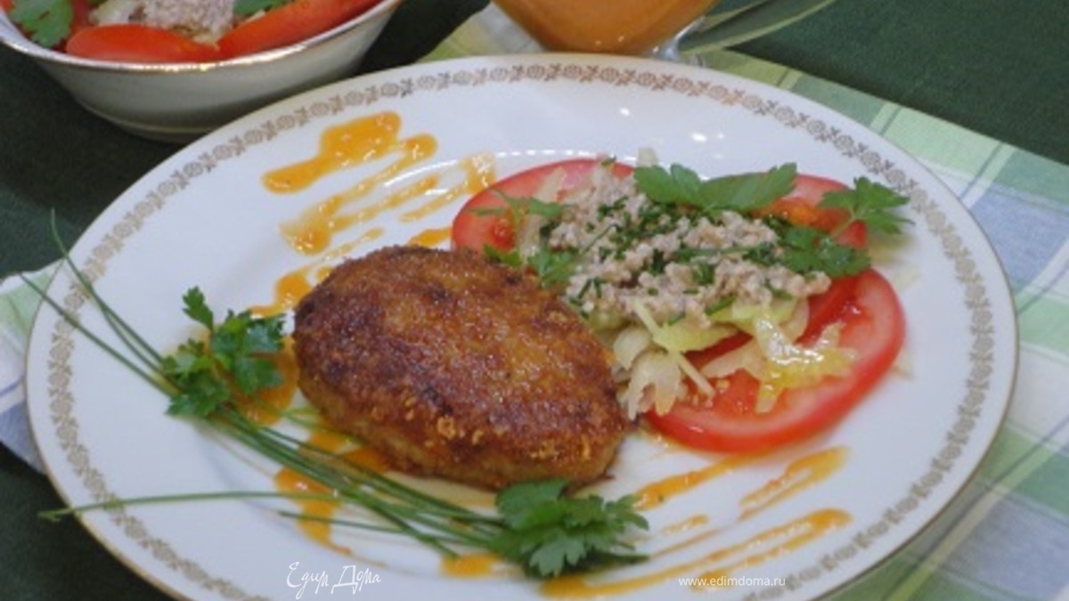 В отличие от классического шницеля, который готовится из тонкого пласта мяса, панированного и обжаренного, этот шницель приготовлен из рубленого мяса.