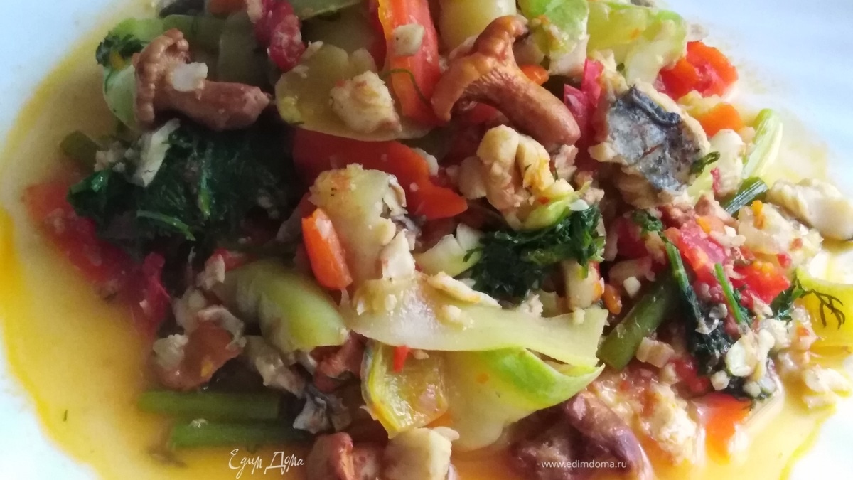 Овощное рагу с рыбой и грибами