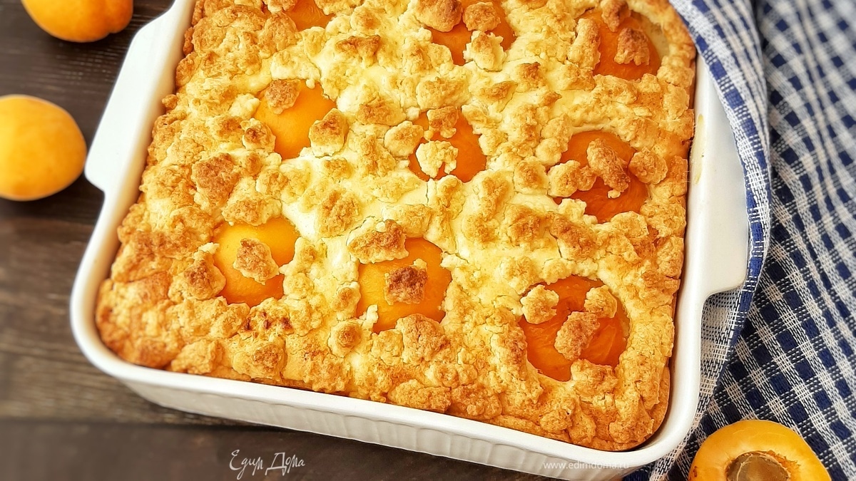 Выкладываем творожную начинку. Половинки абрикосов кладем срезом вниз и слегка их утапливаем. - Шаг 7