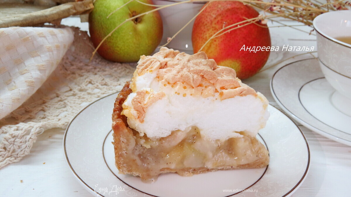 Грушевый пирог с меренгой и карамельной заливкой