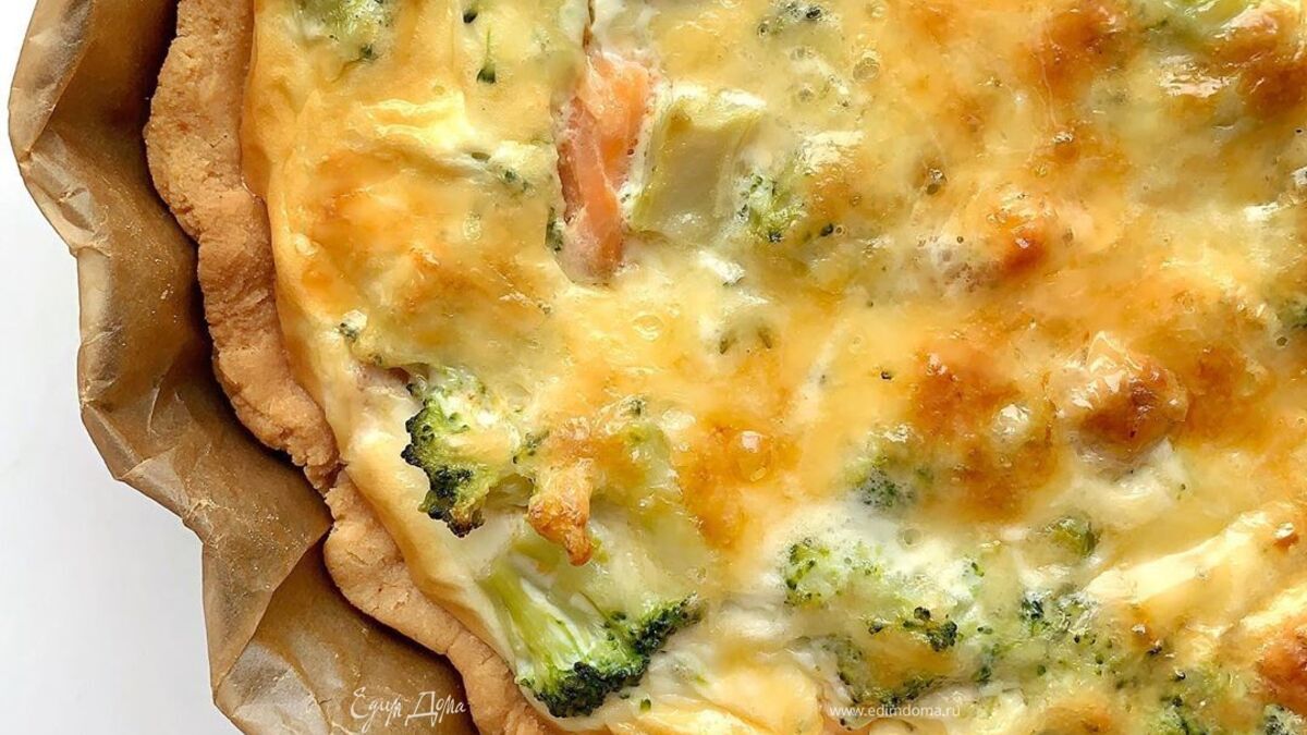 Достаньте песочную основу, выложите кусочки красной рыбы, броколли и залейте сверху сливочной начинкой. Выпекайте в разогретой духовке при 180°C примерно 30 минут. Подавать киш можно как теплым, так и холодным.