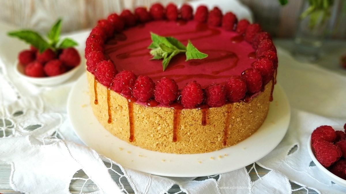Чизкейк получается очень вкусным, с легким ароматом миндаля и малины. Приятного чаепития!