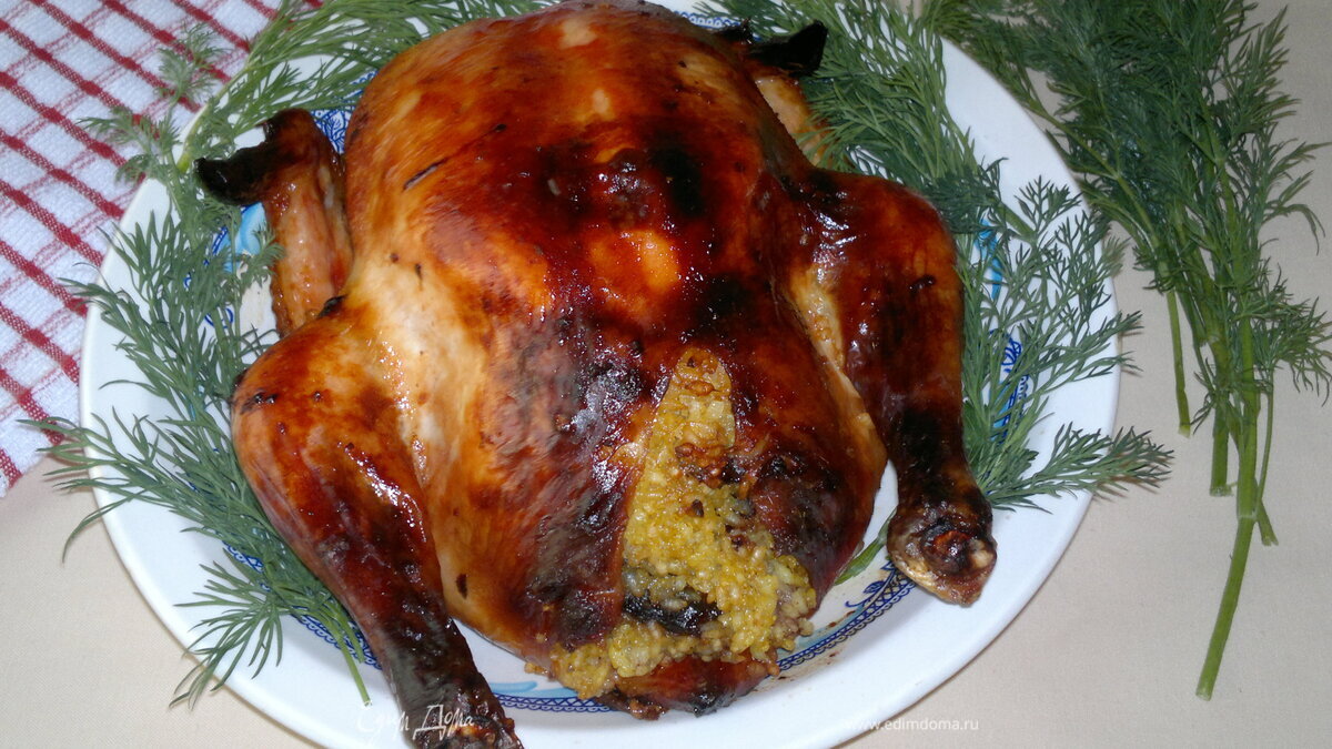 Запеченная фаршированная курица