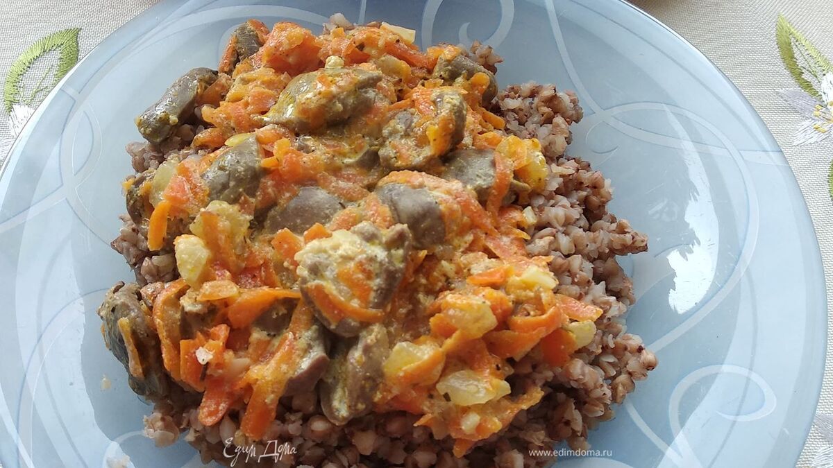 Тушеные куриные сердечки