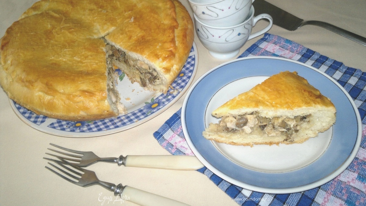 Пирог с курицей, грибами и цветной капустой