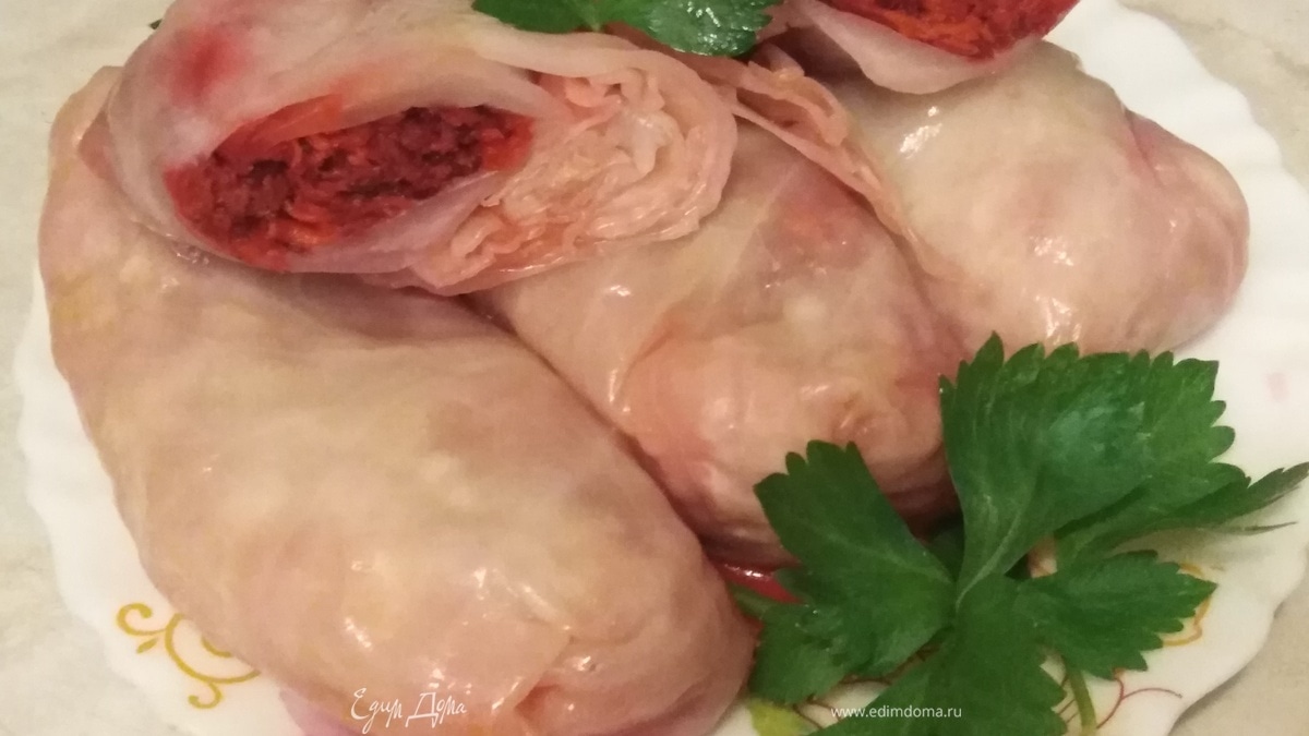 На подготовленные капустные листья выложить начинку. Туго завернуть. - Шаг 4