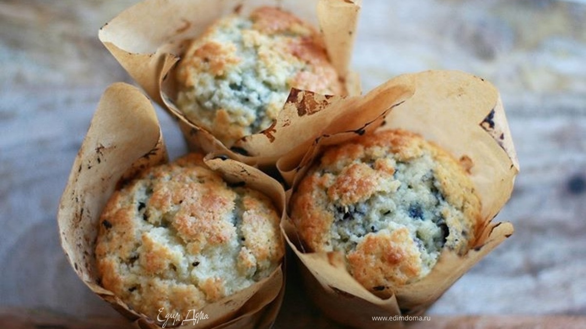 Приступаем к наполнению формочек (8–12 шт.). Чернику (1 стакан) укладываем слоями между тестом, чтобы не окрасить его в фиолетовый цвет. Если мы хотим, чтобы у маффинов были симпатичные шляпки, накладываем тесто доверху. Духовку заранее разогреваем до 205°C. Когда шляпки маффинов приподнялись и треснули, можем убавить температуру до 180°C. Общее время выпекания — примерно 18 минут. Готовность всегда проверяйте зубочисткой.