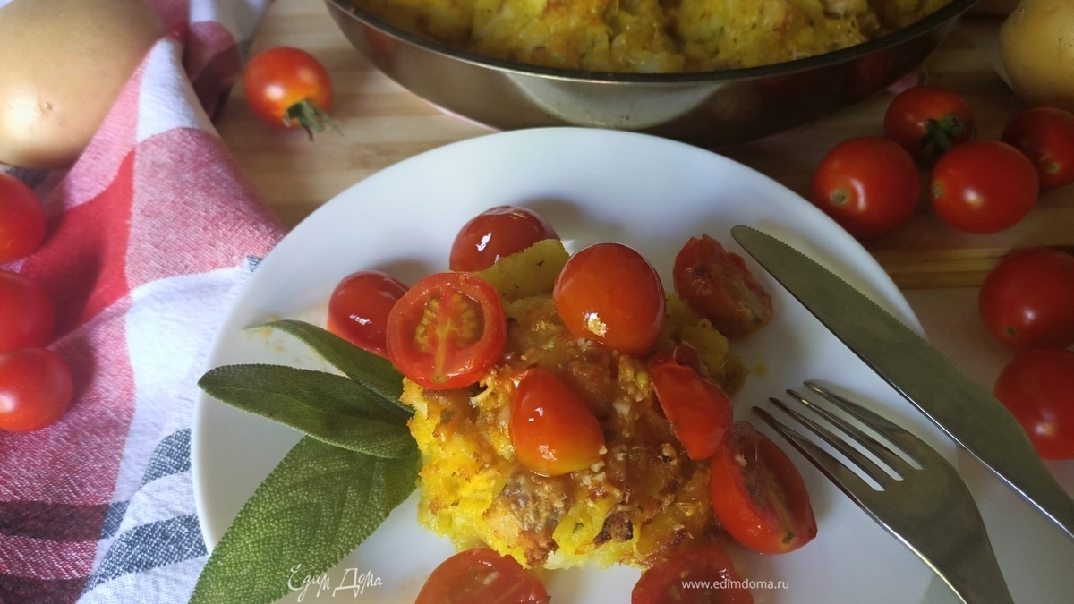 Минтай с картофелем и помидорами черри