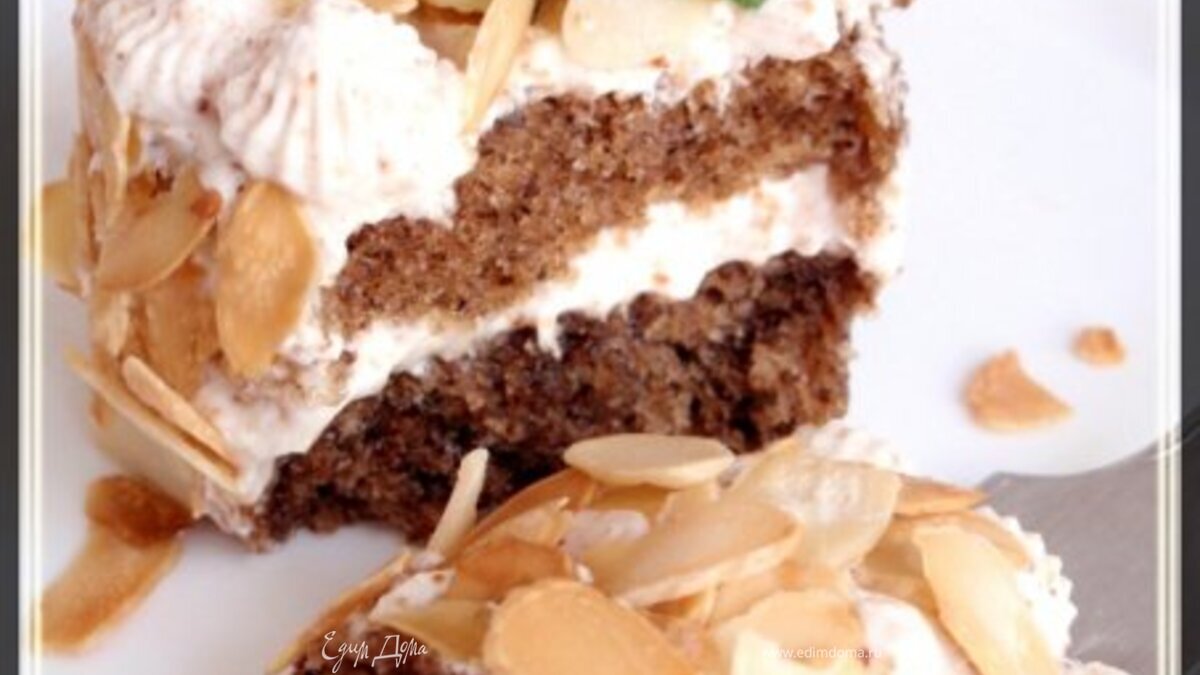 - Шаг 4Теперь переходим непосредственно к самому пирожному. Разрезам каждую основу вдоль на 2 части. Затем на один корж наноси крем с помощью кондитерского мешочка. Если такового нет, то можно сделать бумажный корнет или просто нанести крем ложкой. Далее на крем аккуратно опускаем второй корж, смазываем его кремом сверху и побокам.Теперь бока пирожного обваливаем в миндальных хлопьях и переходим к украшению. Сверху по краю пирожного наносим крем также из кондитерского мешочка, а в середину пирожного насыпаем немного миндальных хлопьев и украшаем мятой. Кстати, по желанию, тесто можно немного пропитать не очень сладким сиропом. Но тесто и так достаточно нежное и поэтому пропитка не является обязательной. Приятного аппетита! Наслаждайтесь! :)