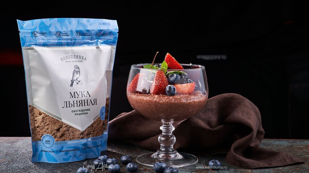 Льняная мука — важный продукт диетического рациона. Она способствует снижению аппетита и улучшает обмен веществ. Льняная мука ТМ «Коноплянка» имеет широкое кулинарное применение: ее можно использовать вместо яиц в выпечке или для загустения супов и соусов. Представляем вам рецепт пудинга, который станет отличной альтернативой привычной каши на завтрак.