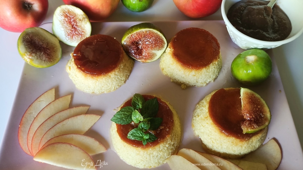 Яблочно-карамельный десерт с инжирным соусом