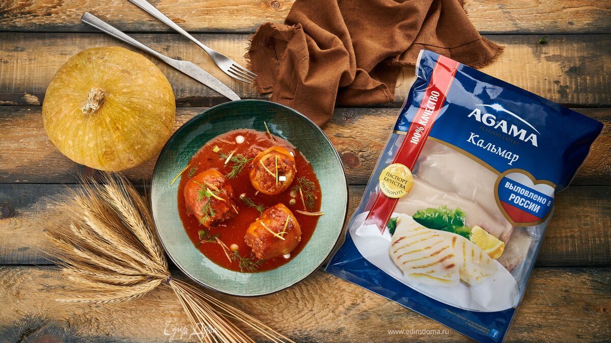 Выложите фаршированных кальмаров в форму для запекания, смазанную маслом. Залейте соусом. Выпекайте в разогретой до 180°C духовке около 25 минут. - Шаг 11