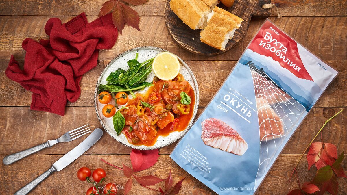 Красный окунь в томатном соусе с оливками