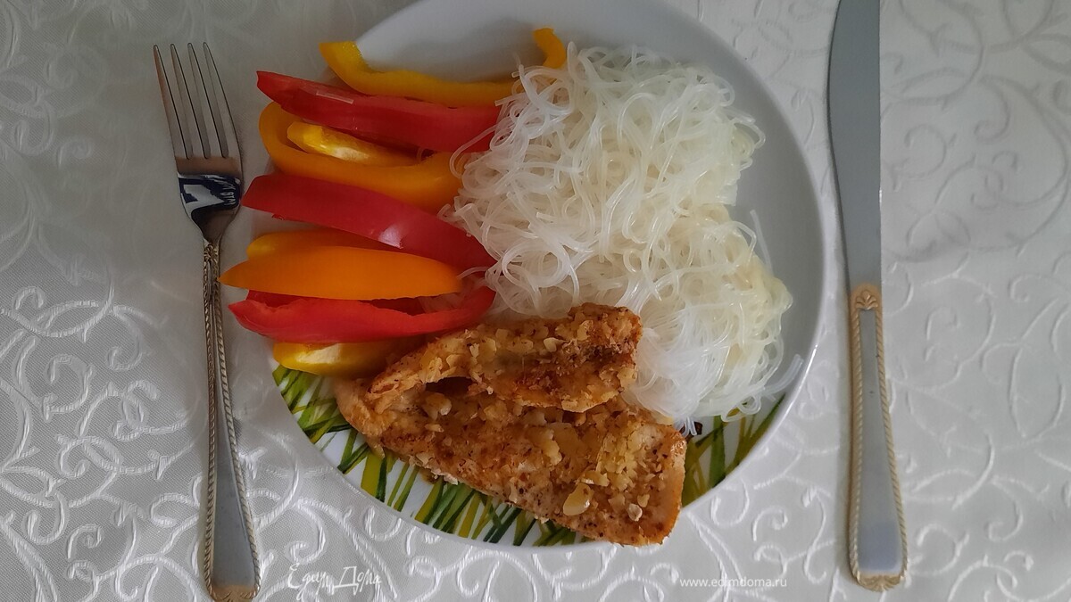 Куриное филе в миндальной панировке со стеклянной лапшой