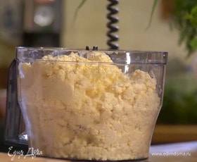 Приготовить тесто: творог слегка взбить в блендере, затем всыпать муку, разрыхлитель, соль, добавить сливочное масло и все еще раз взбить.
